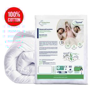 Het Texaal® Katoenen dekbedovertrek tegen huisstofmijt is een medisch hulpmiddel dat u beschermt tegen huisstofmijtallergenen. Het is vrij van chemische behandelingen of plastic coatings. 100% katoen.
