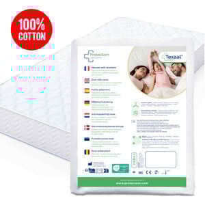 Anti-huisstofmijt hoeslaken voor matrassen - Texaal 100% natuurlijk katoen van het merk Protecsom. Medisch hulpmiddel dat u effectief beschermt tegen huisstofmijtallergenen. MDR - Medical Device Class 1